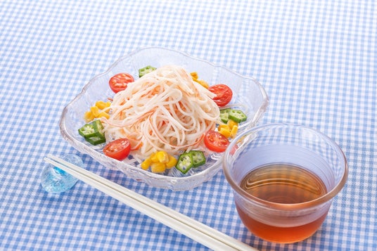 ほぐすだけで簡単に麺として楽しめるカニ風味かまぼこ。