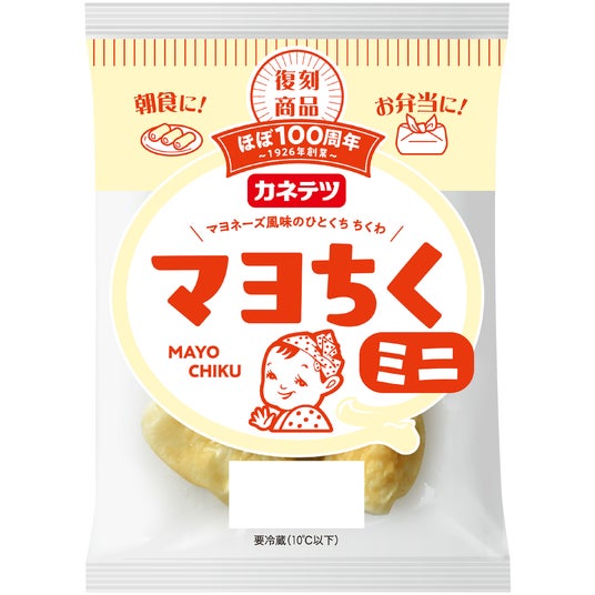 2.マヨちく ミニ カネテツデリカフーズの社員が選んだ「もう一度食べたいカネテツ商品」を復刻。マヨネーズ風ドレッシングを練り込んだふわっと食感のひとくちサイズ竹輪。そのままはもちろん、サラダやお弁当にも最適な一品です。