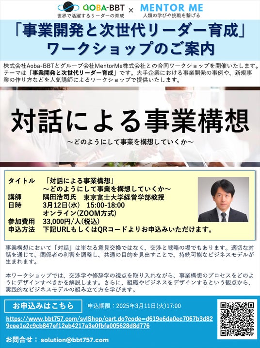 株式会社Aoba-BBTとグループ会社MentorMe株式会社との合同ワークショップを開催します。
