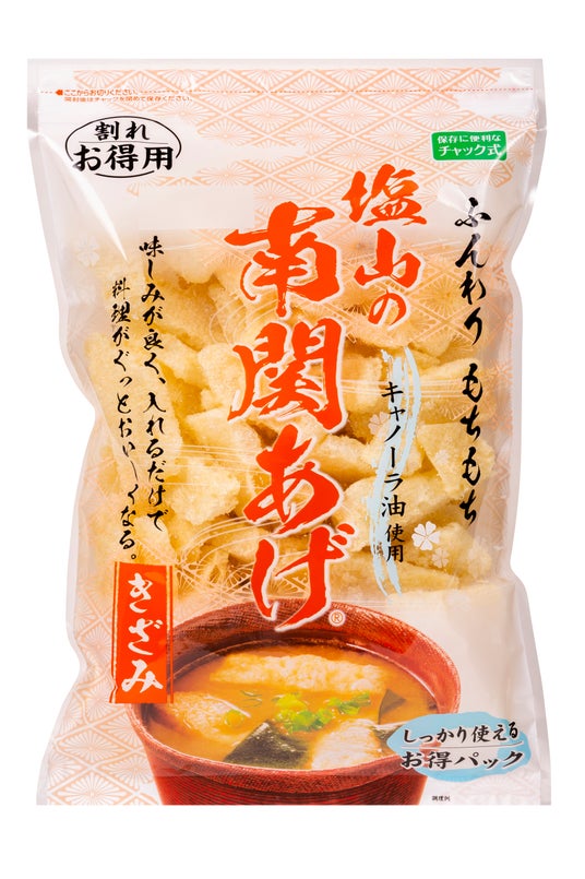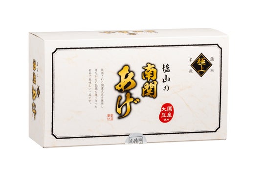 九州圏以外ではあまり馴染みがない「南関あげ」ですが、熊本ではソウルフードとしてよく知られている地元の揚げ豆腐です。一般的な揚げ豆腐より長期保存が可能で、食感はふっくら。味噌汁の具や煮物、煮込み料理などさまざまな料理に利用できます。