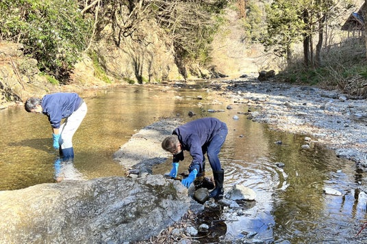2月上旬、実際に川の環境を調査しカワニナを採取、生態系の調査へ