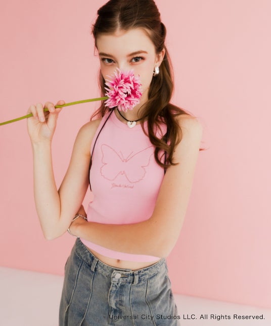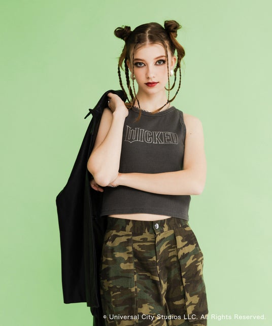 ウィキッドから着想を得たカラーとワンポイントロゴがポイントのタンクトップ。コンパクトなサイズ感で、インナーとしてはもちろん、トップスとして1枚で着るのがおすすめのアイテムです。