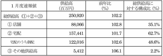 〇1月度の総供給高は、102.2%で前年超えでした。