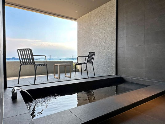 2階の好条件をいかしたスイートルームではバスルームが非日常を満喫できる開放的な作りになっており、バスタブ横のスライドドアを開ければ、テラス奥に広がるアナガ自慢の景色を眺めながら入浴がお楽しみいただける他、淡路島の酒蔵:都美人の地酒を入浴剤としてもご用意したバルコニーコーナースイートとバリエーション豊富なスイートルームで淡路島リゾートを体験いただけます。