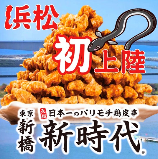 新時代は「揚げ皮串発祥」のお店であり、名物の『伝串』は、特許庁から認められる唯一無二の大ヒット商品です。並んででも「伝串」を体験されたいというお客様が多く、連日行列ができる大人気の居酒屋です。1000の街を元気にするため、全国の街を一つずつ元気にしており、今回はついに浜松初上陸。静岡・浜松から静岡だけでなく東海地方全体を元気にします。オープン前から大行列ができること間違いなしです。