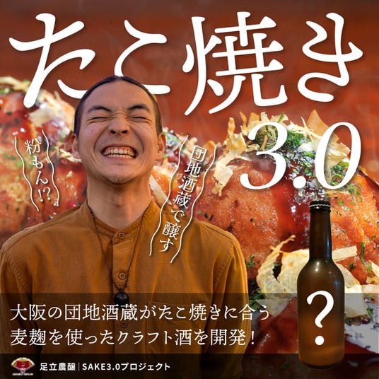 「たこ焼き3.0」は、日本酒の常識を超え、たこ焼きに最適な味わいを目指したクラフト酒を出資者の皆様と共に開発するプロジェクトです!