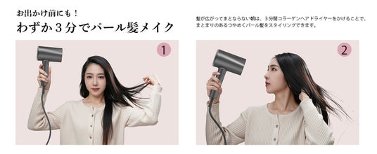 『コラーゲン&大風量で髪が艶めき、肌も潤う。新感覚のナノコラーゲン付き速乾ドライヤー 』
