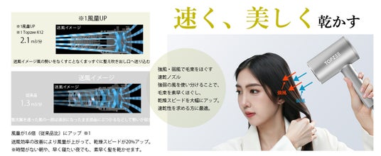 - TOPZEEのドライヤーは、独自のテクノロジーでその技を再現。