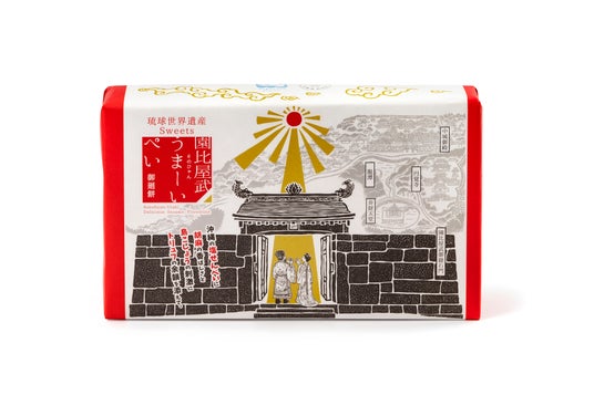 「首里城公園内にあるのに、園比屋武御嶽石門は世界文化遺産としてあまり知られていない。お菓子を食べることによって園比屋武御嶽石門を知ってもらうきっかけになってほしい」(「いまいパン」パティシエール・今井あいこ)との願いを込めて作られた「園比屋武うまーいぺい」。沖縄の旅の思い出や、県外の方への心尽くしとしてご利用ください。