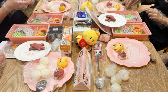 2.クイッピーの「手まり寿司」作りに挑戦!まず挑戦したのは、ニュー・クイックのマスコットキャラクター「クイッピー」をモチーフにした手まり寿司作り。クイッピーのぬいぐるみを参考にしながら、海苔やいくらを使って表情を作る工程では、微妙なバランスに苦戦する場面も。「きれいにできなくても、それが個性になっていい感じになりますよ!」という海音さんのアドバイスに励まされ、ユニークなクイッピー手まり寿司が次々と完成しました。
