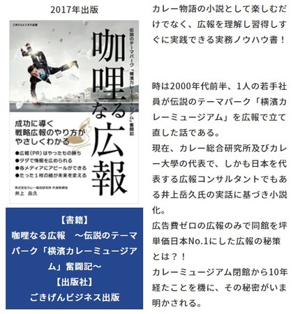 入館者数減少に悩む横濱カレーミュージアムを、イベントと週2~3回リリースを配信する独自の理論に基づいて広報戦略を駆使し、わずか1年で復活させ、世にご当地カレーやカレーブームを起こした立役者が明かす「戦略的な広報」を使って、驚くほどの事業成長を実現しました。