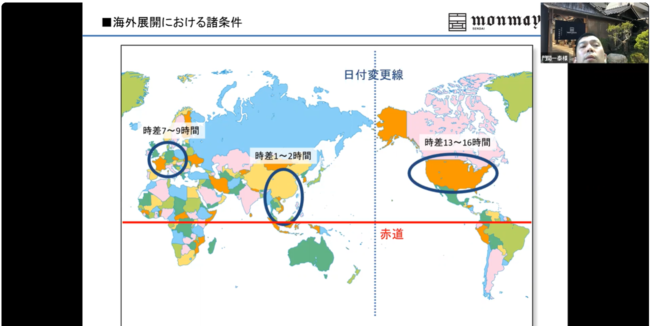 一方で、アジア諸国は時差が1~2時間程度、そして赤道もほぼ通過しませんし、距離も近いので物流コストも安い。そして、欧米に比べると、日本に対して親近感を持ってくれる方が多いですし、日本人が欧米に憧れるようにアジア諸国の方々っていうのは比較的日本に対してプラスの印象で憧れのようなものを持ってくださるので、非常にやりやすいです。ですので、物流コスト、国民性、言ってしまえばマネジメントのしやすさも含めてアジア諸国がまずは海外展開するのにはやりやすいのではないかと思っております。ですので、うちはアジア諸国を中心に海外展開をしております。