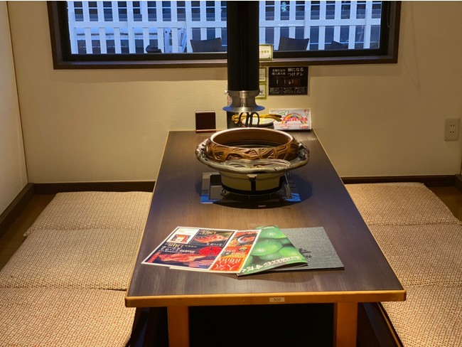 <各テーブルに1台以上、上引きダクトフードが設置されている為一般の飲食店よりも換気効率が良い>