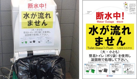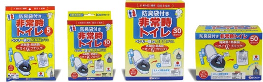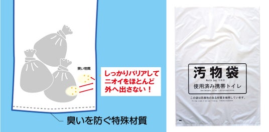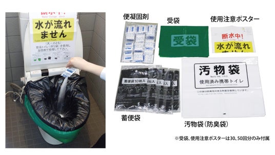 断水時に既存のトイレがすぐに使えるよう「蓄便袋」と「便凝固剤」がセットになっています。
