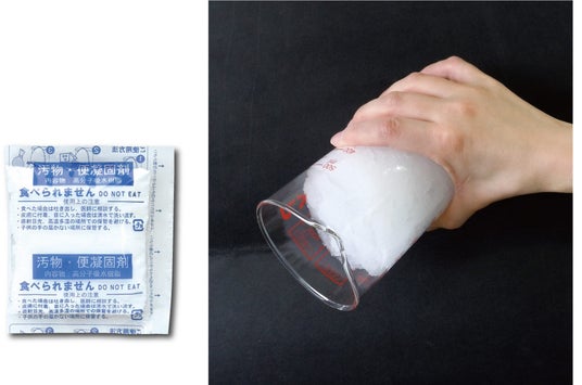 水分を吸収し固める「高吸水性ポリマー」で素早くゼリー状にして処理します。使用後の臭いを抑える成分も配合されています。