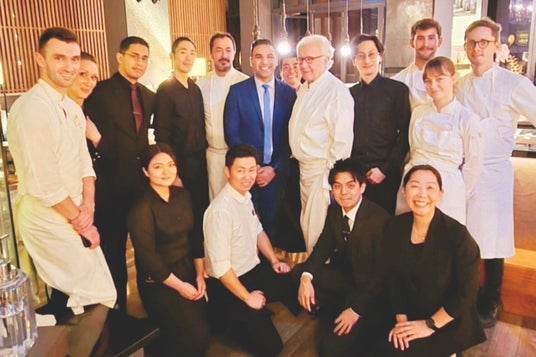 世界的巨匠アラン・デュカス氏を迎え、夢の共演が実現。イベントを支えたシェフ、サービススタッフとともに記念の一枚。
