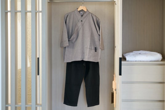 客室からホテル内のウエルネスセンターまで、そのまま快適にご着用いただけるよう設計された和モダンなデザイン。ウエルネスセンターの落ち着いた雰囲気に溶け込む美しさと、日常を忘れさせる上質な佇まいを兼ね備えています。