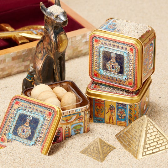 手のひらサイズのお菓子缶に溢れんばかりのエジプト
