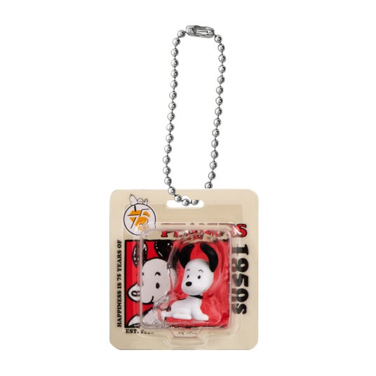 PEANUTSコミック生誕75周年の記念商品!歴代のスヌーピーたちがブリスターパッケージ入りのミニチュアチャームになりました!