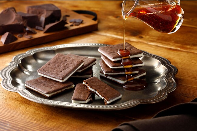 メープルシュガーを生地に練りこみ、サクサクと軽い食感に焼き上げたクッキーでバター風味のチョコレートをサンドしました。発売当初から愛されている人気No.1商品です。