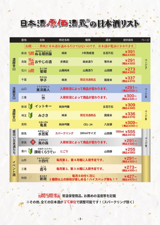 お客様に「日本酒」をよりお楽しみいただきたい、そんな気持ちから始めた「原価」提供です。