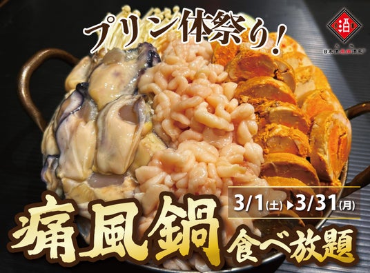 日本酒原価酒蔵(http://sake-genkabar.com) では、牡蠣、白子、あん肝が贅沢に入った”痛風鍋”食べ放題を3月1日(土)~3月31日(月)まで全店で実施致します。