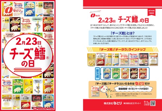 「チーズ鱈」の生産が開始された2月23日を チーズ鱈(R)の日に制定しました。一般社団法人日本記念日協会に申請し、2022年12月に登録されました。