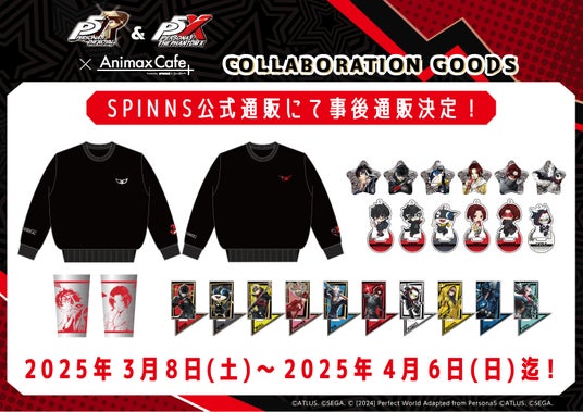 アパレル事業を展開する株式会社ヒューマンフォーラム(本社:京都市中京区 代表取締役会長:出路 雅明)が運営するアパレルブランド「SPINNS」は、『ペルソナ5 ザ・ロイヤル & ペルソナ5: The Phantom X』コラボレーションカフェの限定グッズをSPINNS公式通販にて販売する。