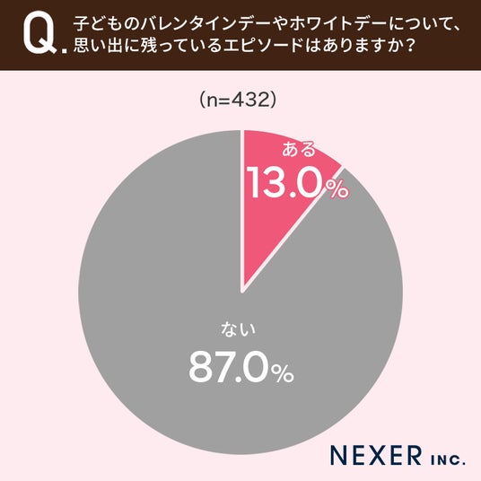 ■13%が子どものバレンタインデーやホワイトデーについて、思い出に残っているエピソードが「ある」
