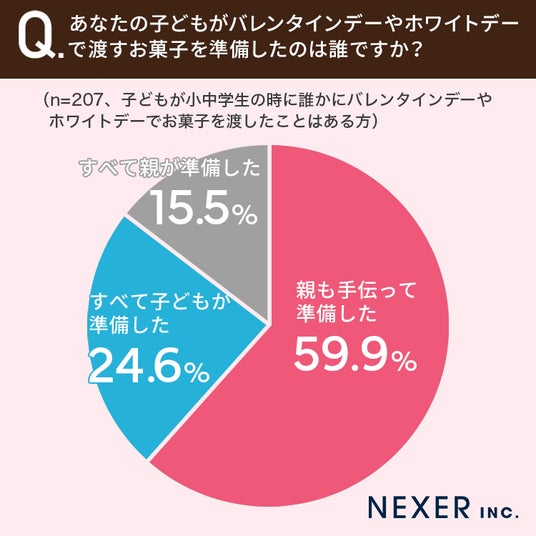続いて、子どもがバレンタインデーやホワイトデーで渡すお菓子を準備したのは誰か聞いてみました。