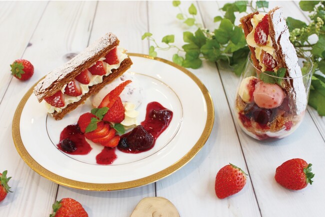 春のフルーツといえば「いちご」。重箱食堂かさねでは特製のいちごミルフィーユを使った様々な味や食感が楽しめる2種類の新作スイーツをご用意しました。