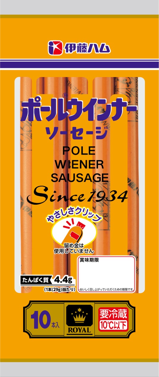 1934年に発売したポールウインナーは、お肉がおいしいソーセージです。1本ずつフィルムに包まれたスティック状で、おやつやおつまみにぴったりです。