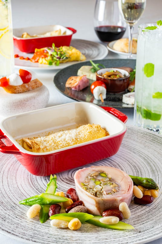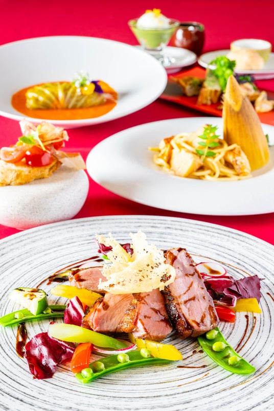 ランチタイムでは、彩り豊かな前菜からパスタ、シーフードやお肉、デザートまで40種類以上の料理が並ぶビュッフェスタイルで、本格イタリアンをお楽しみいただけます。ディナータイムでは、その日の気分やお好みに合わせてお選びいただける3種のコース料理をご用意しております。