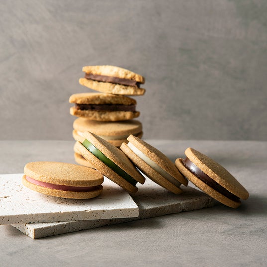 フランス産発酵バターを使って焼き上げる、シンプルながら深いコクのあるクッキーが、それぞれの個性あふれるチョコレートフィリングの味わいを引き立てます。