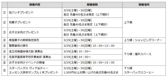 また、3月29日(土曜)・30日(日曜)の2日間は、警察車両の特別展示や地元幼稚園・高校の演奏等も実施します。お出かけの際は是非金立SAにお立ち寄りください。