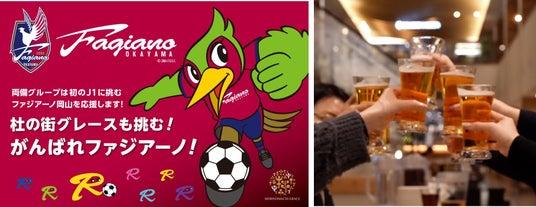 杜の街グレース(商業施設|運営:両備ホールディングス株式会社、所在地:岡山市北区下石井二丁目10番8号/ https://www.morinomachi-grace.jp/ )では、今シーズン「ファジアーノが勝ったら祝杯ドリンク1杯プレゼント」を実施しています。ホームゲーム(日中開催)に限り行なうこの企画。次は3月2日の清水エスパルス戦です。ファジアーノ岡山が見事勝利を飾ったら、杜の街グレースでお食事を注文された方に、祝杯ドリンクを1杯プレゼントいたします。ファジユニの方はそのままでお越しください。杜の街プラザでお祝いしましょう。