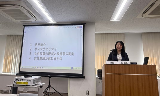 当日は三浦法律事務所(東京都千代田区)パートナー 弁護士で、OnBoard株式会社(東京都千代田区)の代表取締役CEOの越 直美氏を講師にお迎えし、「企業のサステナビリティ推進とダイバーシティ」をテーマにご講演いただきました。サステナビリティに関する世界的な情勢についてご説明をいただいた後、その中でも特に女性活躍についてご自身の経験談も交えながらお話いただきました。また、女性登用が進んでいる企業の特徴や具体的な取り組みについてもご紹介をいただきました。次に女性活躍推進に関する取り組みや制度について各社の担当者から紹介があり、その施策の取り組み状況や課題、講演会を受けての気づきについて、参加者同士で意見交換を行いました。他社の制度に共感する声や女性活躍のポイントとなる意識や取り組みについて知ることができたという意見が聞かれました。