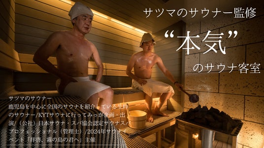 特別客室には、鹿児島で活躍する「サツマのサウナー」が監修した本格サウナ室を設置。座面より低い位置に配置されたMETOS社のZIELストーブが体を芯から温め、横になれる設計で深いリラックスへと導きます。