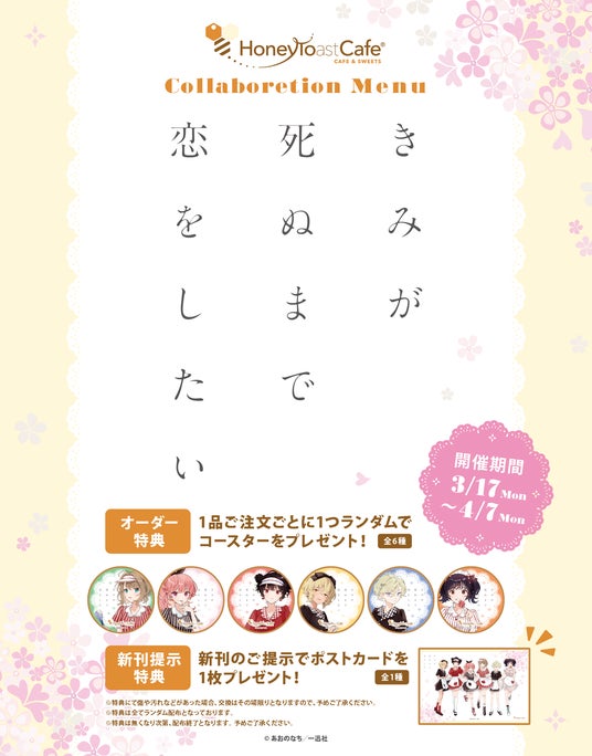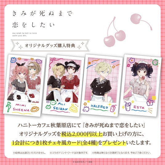 一迅社WEBマンガサイト「一迅プラス」にて連載中の漫画『きみが死ぬまで恋をしたい』コミックス第8巻の発売を記念して、ハニトーカフェ秋葉原店にてコラボの開催が決定いたしました!