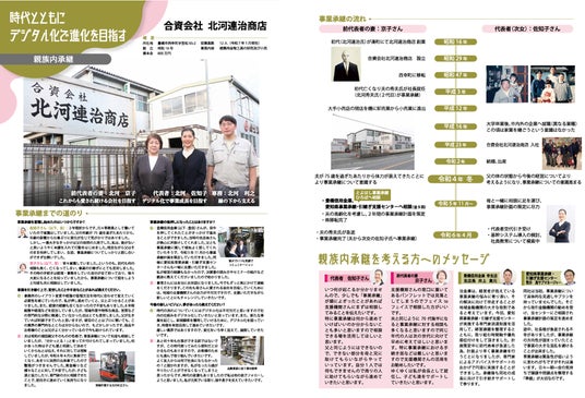 第6号では、豊橋市で建築用金物工具の卸小売業を営む、合資会社北河連治商店の親族内承継の事例をご紹介。事業承継に取り組むきっかけや引き継ぐ上での苦労話、今後のビジョンなどを凝縮したインタビュー記事を掲載しています。