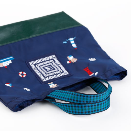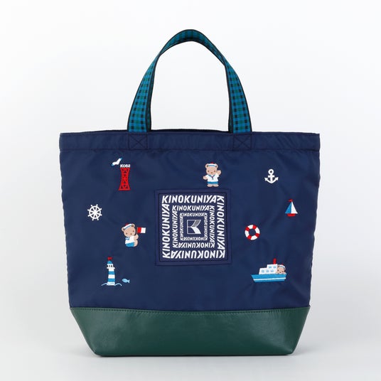 船やイカリ、塔など神戸のマリンモチーフが刺繍されており、可愛らしいバッグになっています。オリジナルカラーで施された紀ノ国屋のロゴは、織りネームで再現されています。