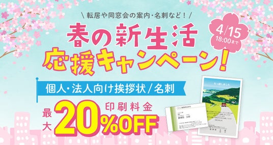 2025年4月15日(火)18:00まで印刷最大20%OFFのキャンペーンを実施中。