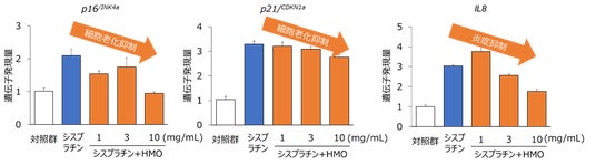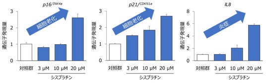 図2.シスプラチンによる細胞老化、炎症関連遺伝子発現量の増加