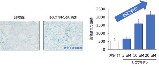 図1.シスプラチンによるSA β-gal染色陽性細胞の増加