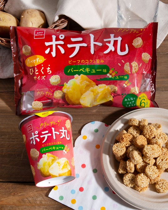 株式会社おやつカンパニー(所在地:三重県津市 代表取締役社長:横山正志)は、大人のリフレッシュタイムにもぴったりな味わいのポテトスナック菓子『ポテト丸』の新たな定番フレーバーとして『ポテト丸(バーベキュー味)』を、2025年3月3日(月)より全国にて発売します。ひとくちサイズで食べやすいコロコロッと丸いカタチが生む、カリッサクッとした軽快な食感、口の中でホロホロッとほどける独特の食感変化を楽しめるポテト丸は、ひとくちで手軽にリフレッシュできる小粋な新感覚ポテトスナック菓子。日常のホッとひと息つきたいひとときに、ポテトの美味しさとビーフのコクと旨みが広がる「ポテト丸(バーベキュー味)」を是非、お楽しみください。
