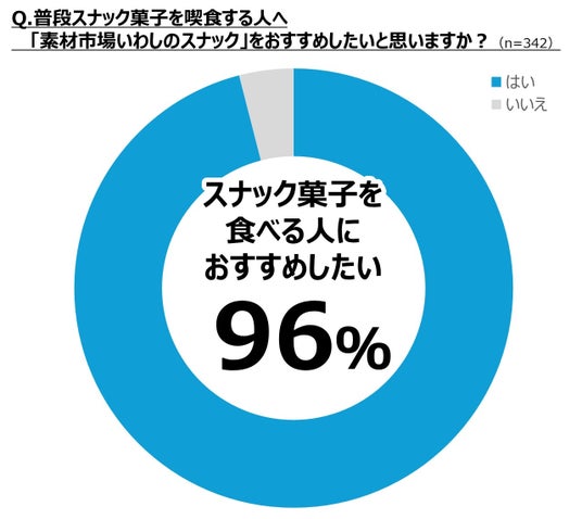 *2 質問:Q普段スナック菓子を喫食する人へ(例:ポテトチップスなど)「素材市場いわしのスナック」をおすすめしたいと思いますか? 結果:管理栄養士96%が「はい」と回答