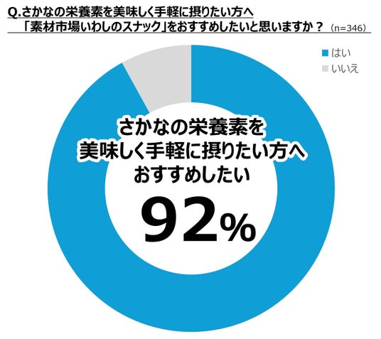 *3 質問:Qさかなの栄養素を美味しく手軽に摂りたい方へ「素材市場いわしのスナック」をおすすめしたいと思いますか? 結果:管理栄養士92%が「はい」と回答
