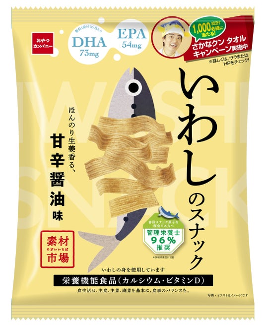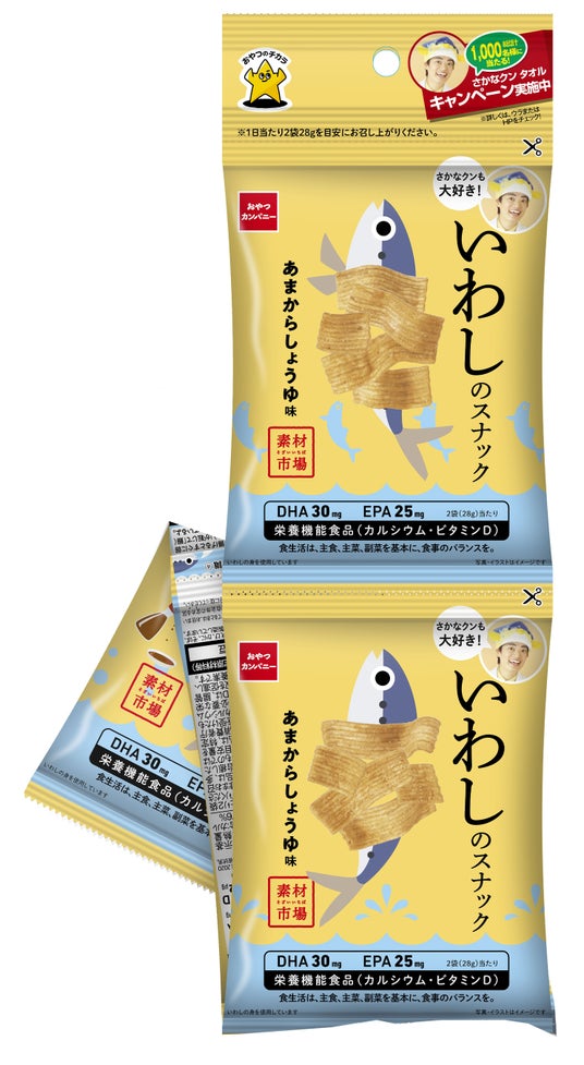株式会社おやつカンパニー(所在地:三重県津市 代表取締役社長:横山正志)は、魚介が持つ栄養素をおやつ感覚で摂れるスナック菓子『素材市場』シリーズを展開しています。