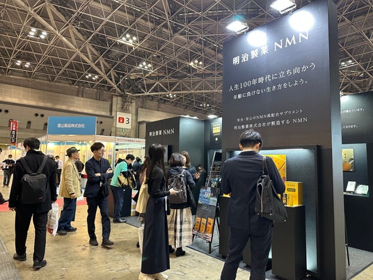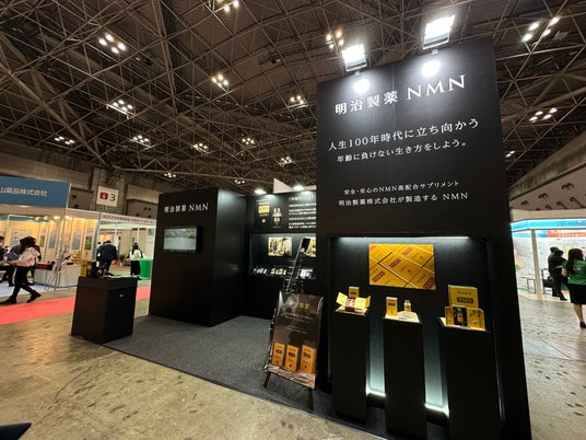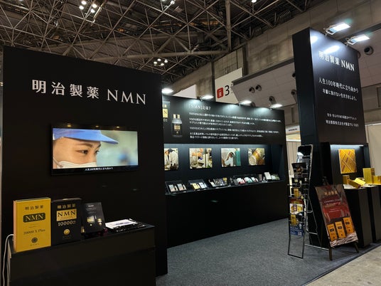 当社ブースでは、エイジングケア成分「NMN」を中心とした最新の商品や研究成果をご紹介し、来場者の皆様にその魅力を直接ご体験いただける機会を提供いたしました。また、明治製薬の理念やブランドの世界観を存分に感じていただける空間を設け、製品の特長や開発のこだわりについて詳しくご説明させていただきました。多くの方々にご来場いただき、実際に商品を手に取っていただくことで、当社の取り組みに共感し、関心を持っていただく貴重な機会となりました。