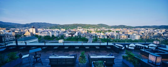最上階のルーフトップ・ラウンジ「空庭テラス」では、足湯に浸かりながら、日々刻々と変わりゆく東山の情景や、四季折々の表情をお楽しみいただけます。